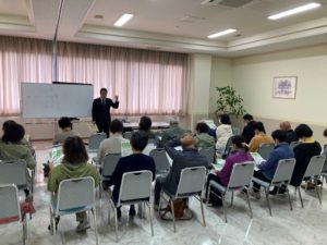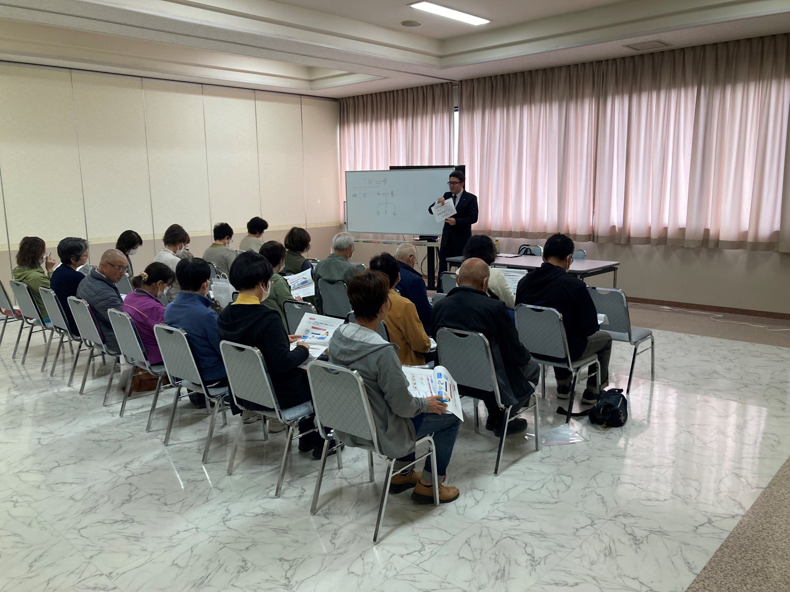 28名の参加者が集まる中、当センターの中澤淳一が『相続税と生前贈与』をテーマに講師をさせていただきました。