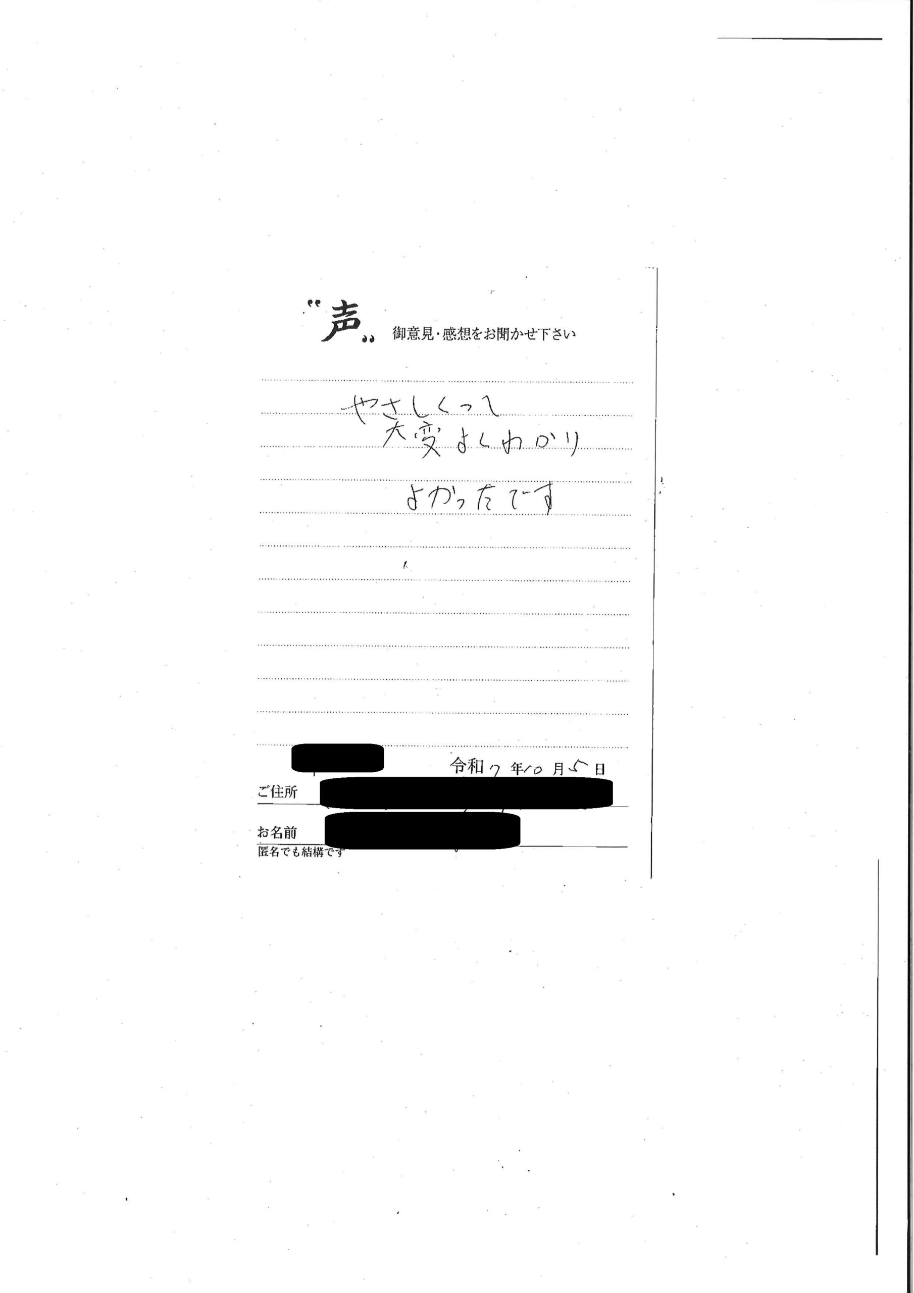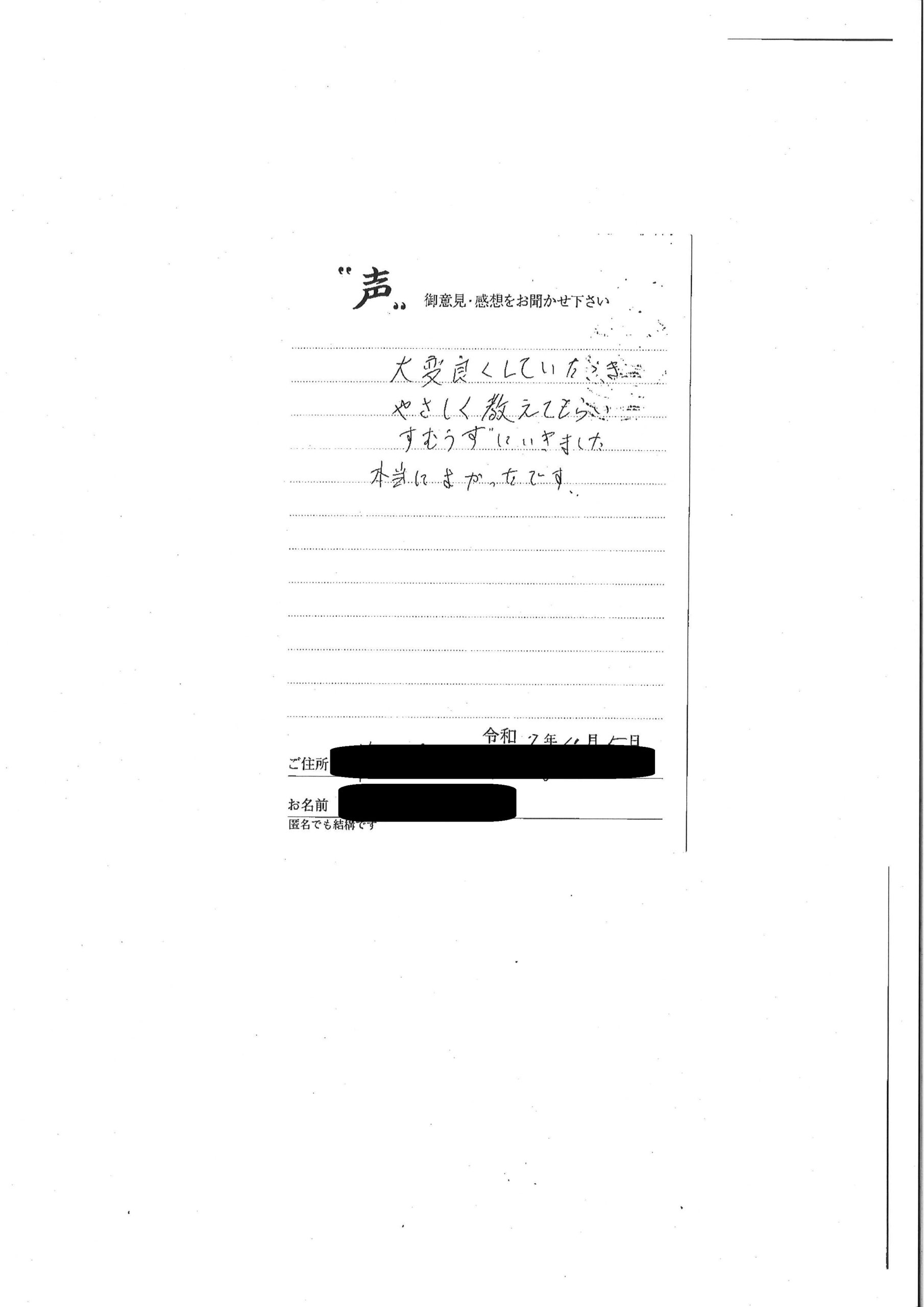 大変良くしていただき、やさしく教えてもらいスムーズにいきました。本当によかったです。